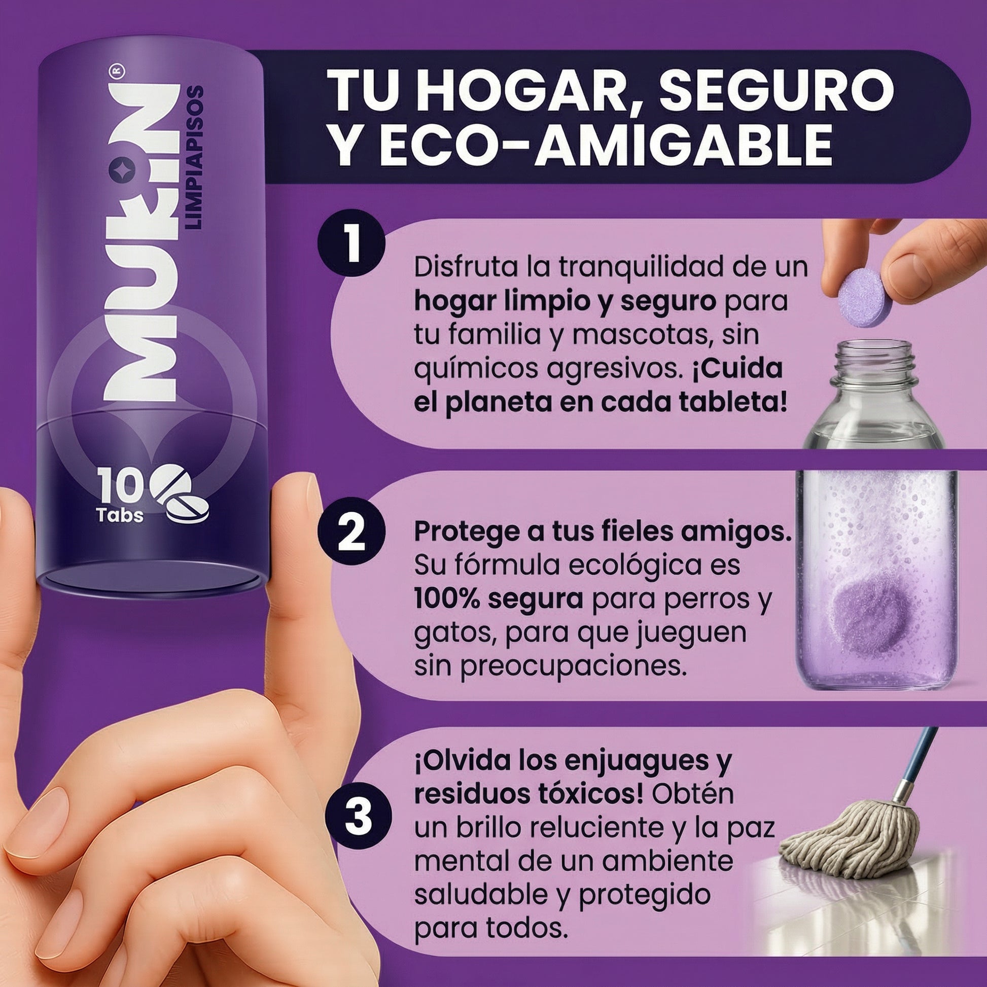 Mukin arrasa con la suciedad sin químicos fuertes ni riesgos para tus mascotas. Un piso limpio, seguro y con olor fresco